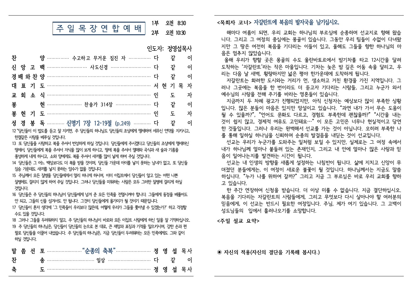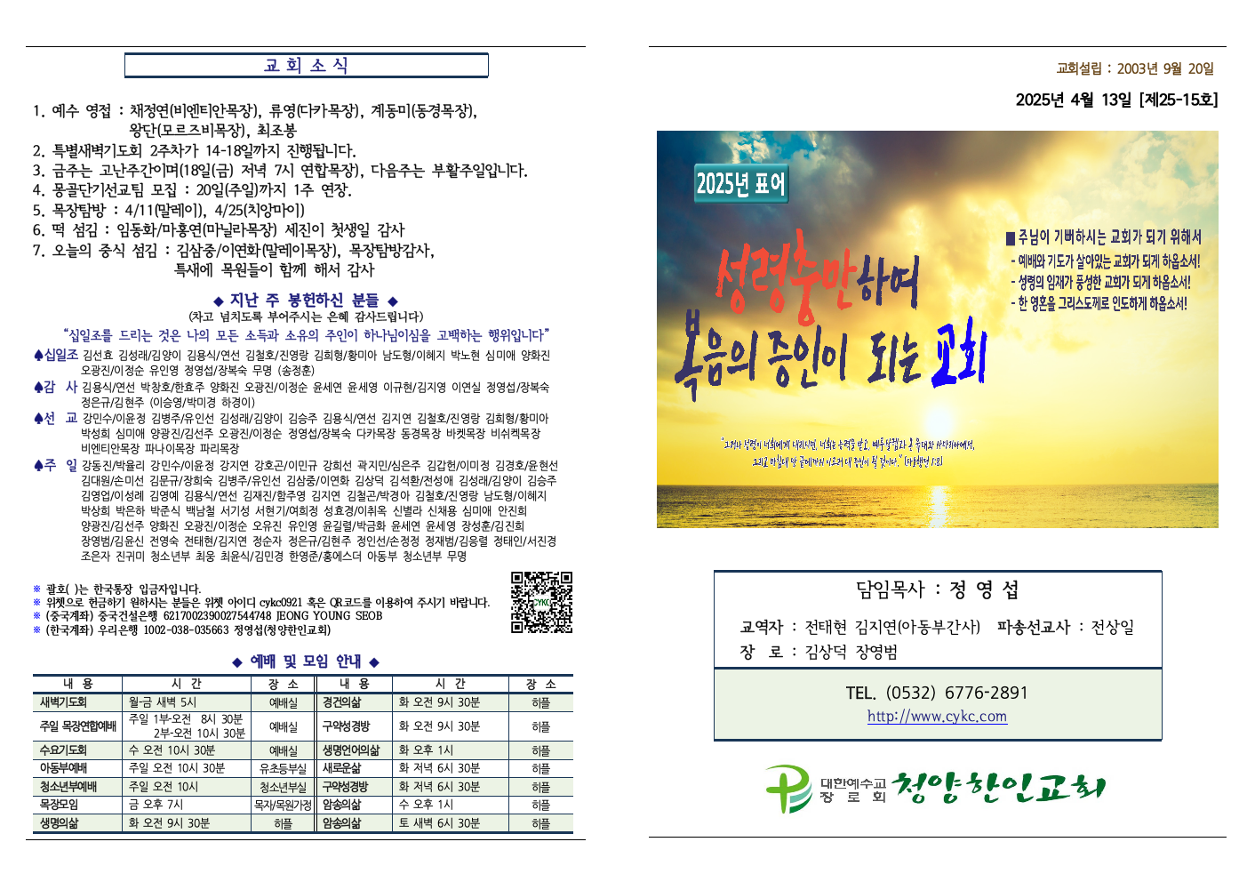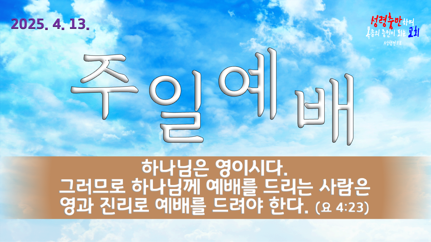 * 주일예배 자료는 매주 토요일 저녁7시 이후 이용 가능합니다.